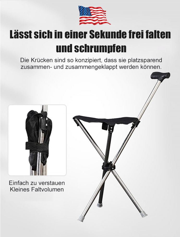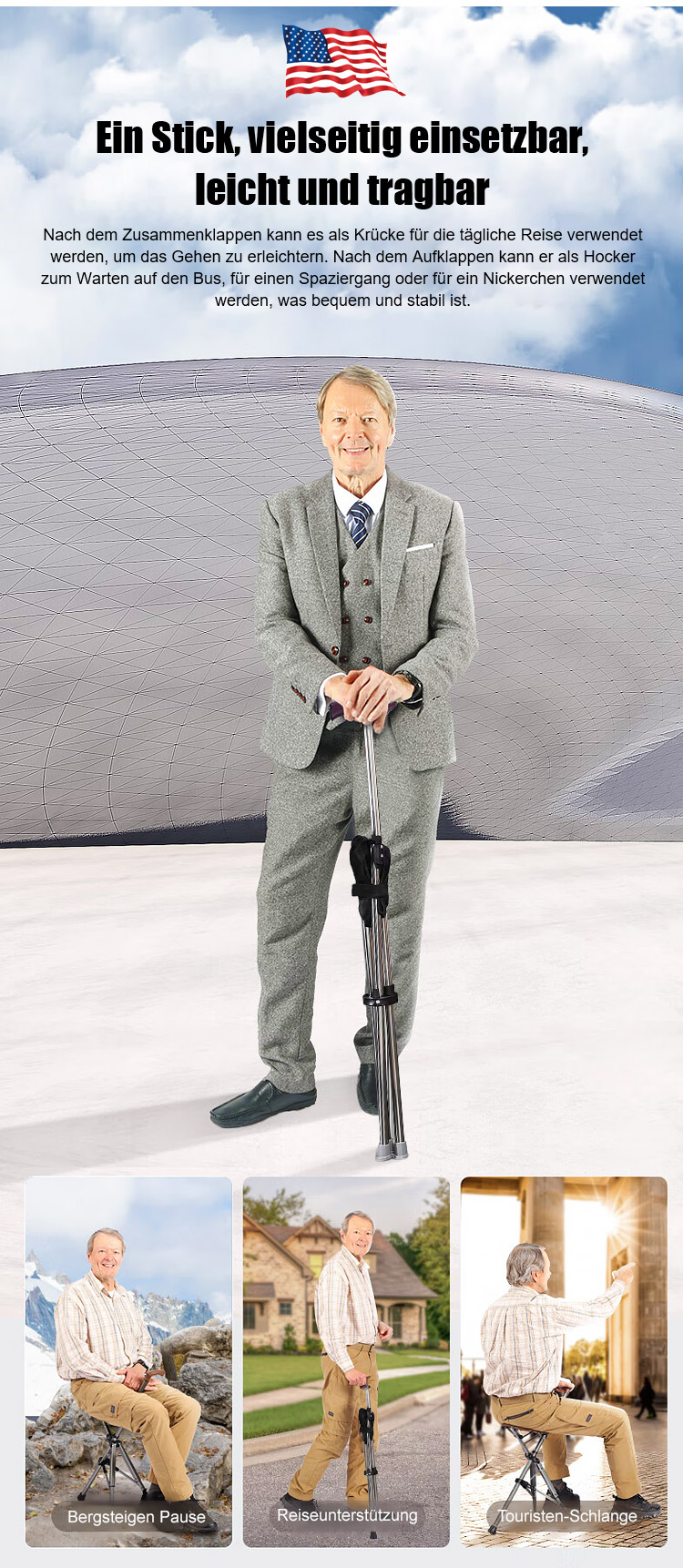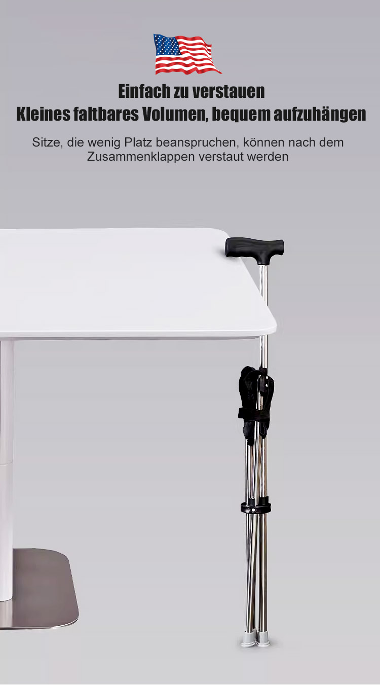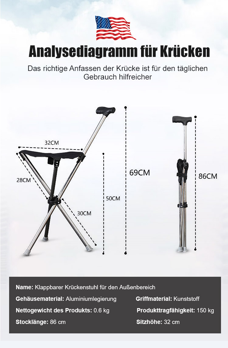 2-in-1 Faltbarer Gehstockstuhl, leicht und tragbar, 150 kg Tragkraft, Gehhilfe für Senioren im Freien🧓