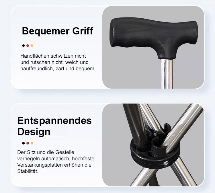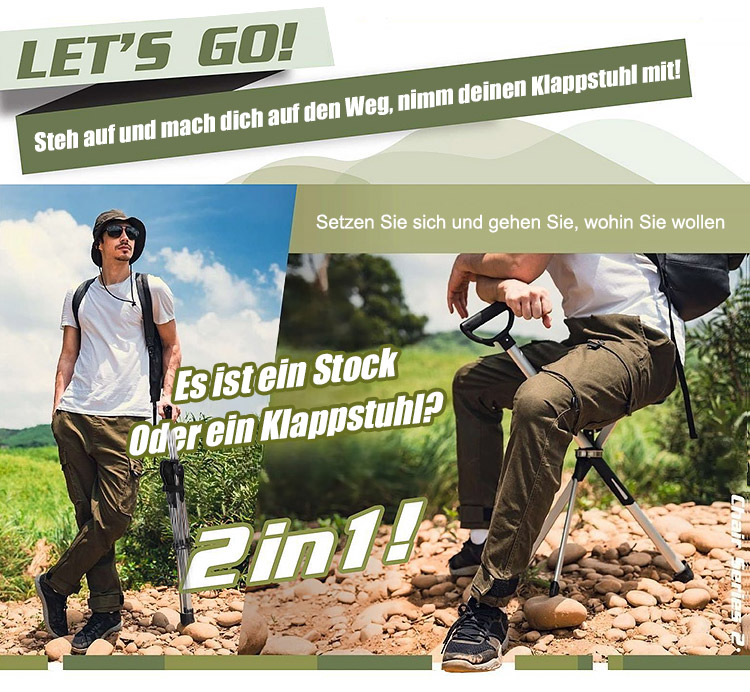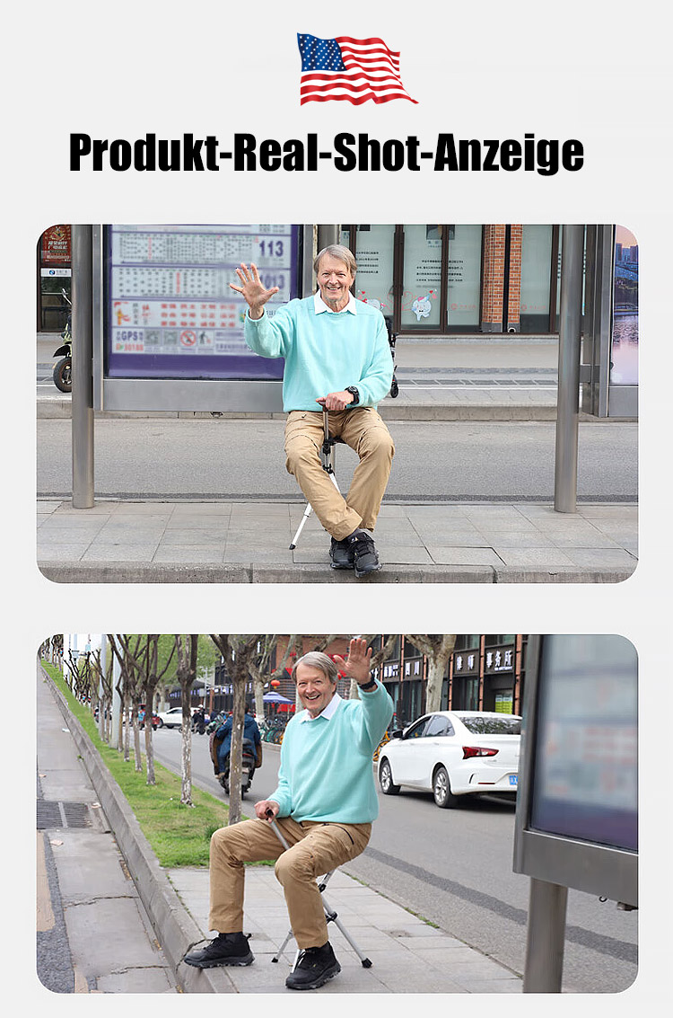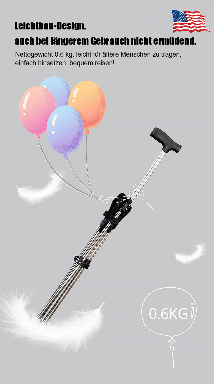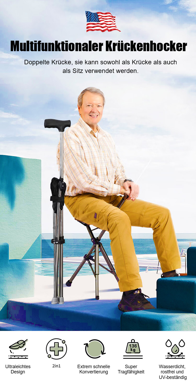 2-in-1 Faltbarer Gehstockstuhl, leicht und tragbar, 150 kg Tragkraft, Gehhilfe für Senioren im Freien🧓