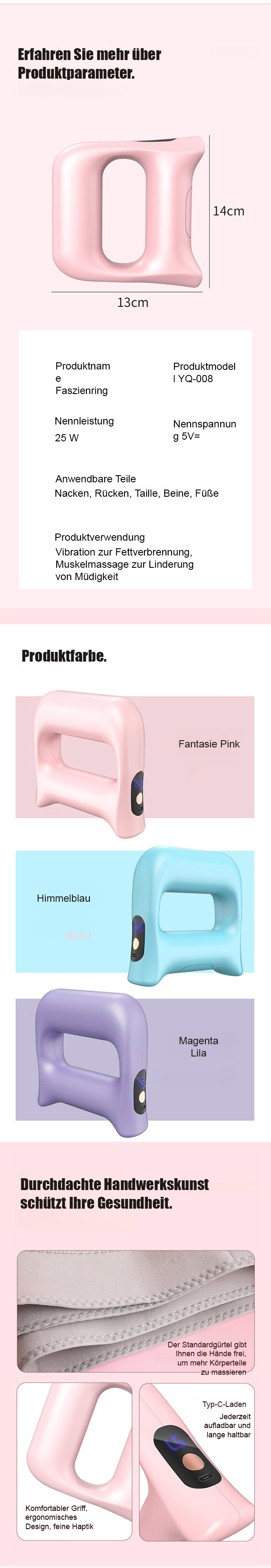 [Schnelles Fettverbrennen ohne Training] Vibrierende Massagerolle, straffende Faszien, 360°-Vollmassage