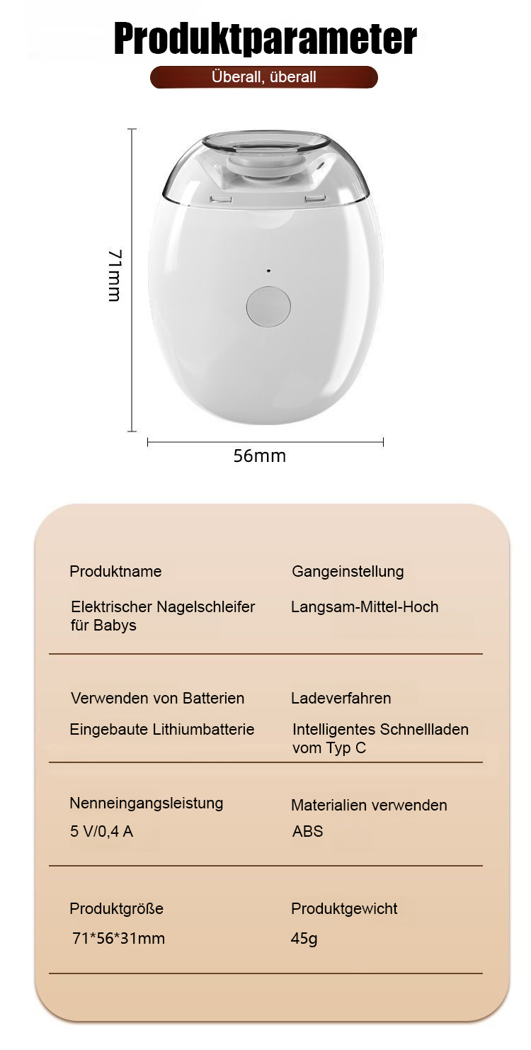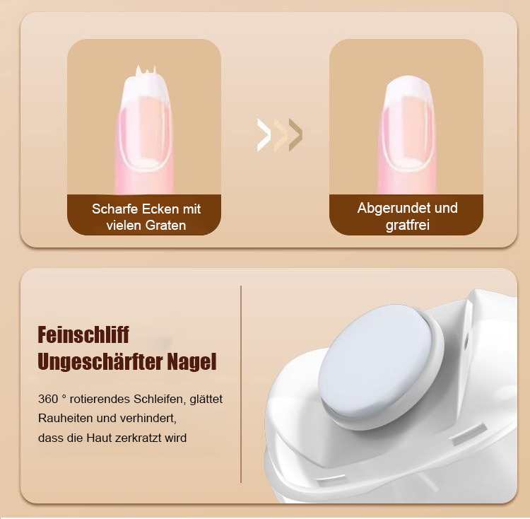 ✨Elektrischer Nagelschleifer – 3-Gang, Geräuscharm & Beleuchtung, Für Die Ganze Familie. Typ-C Aufladung, Sicher Für Babys & Senioren, Sanftes Polieren
