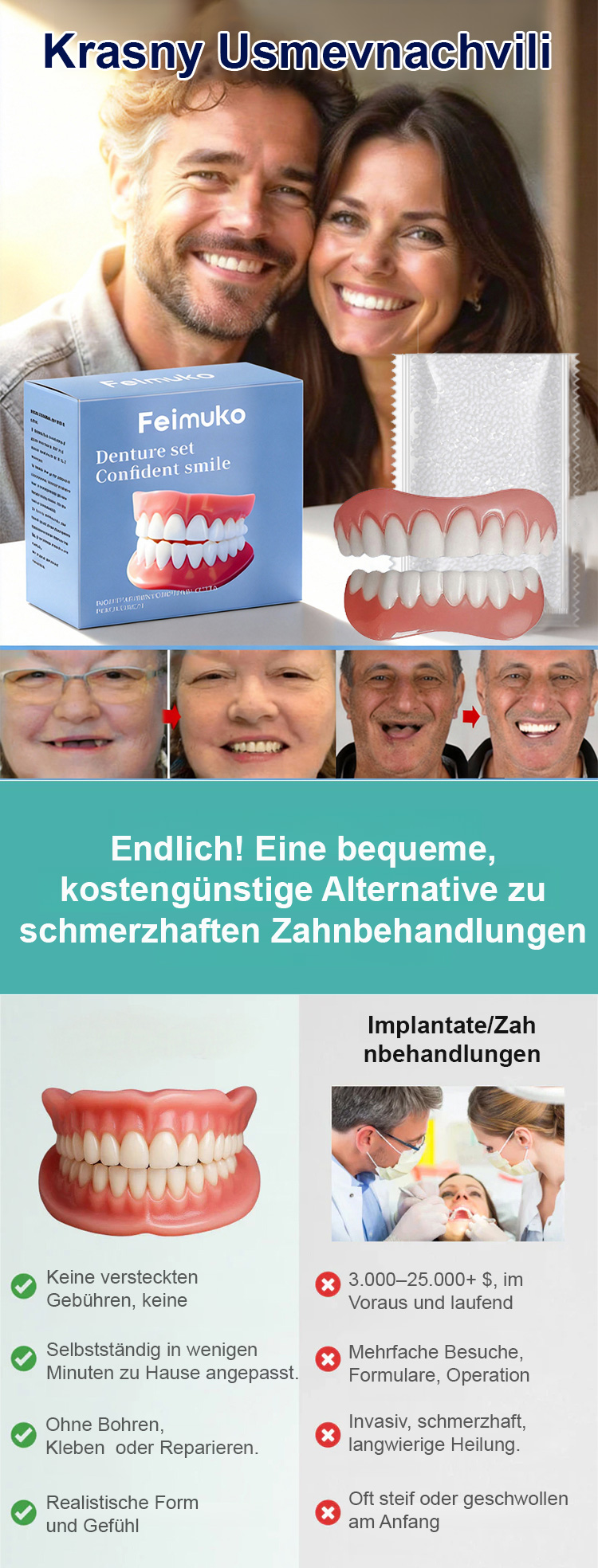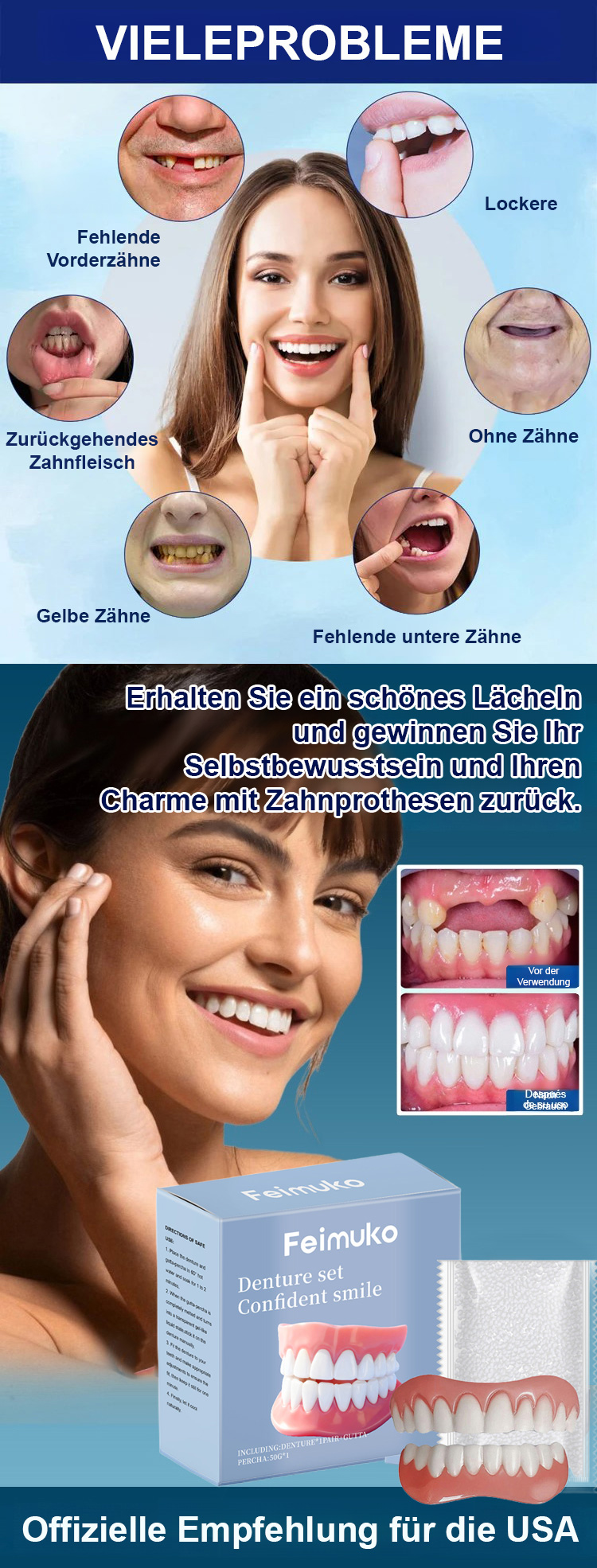🦷✨Natürliches und schönes Zahnprothesen-Set – Einfach in 3 Minuten zu Hause anzulegen, kein Klebstoff erforderlich, sicherer und bequemer Sitz 😊💯